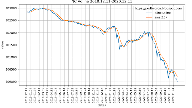 Jeszcze gorzej wygląda wykres Adline (advance - decline index):